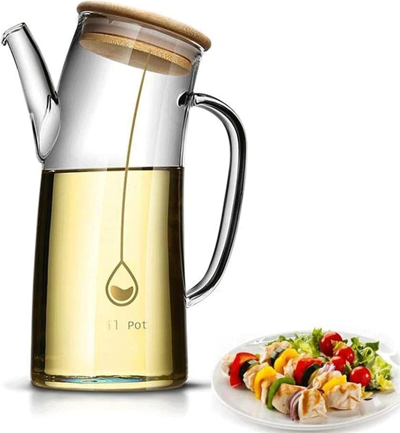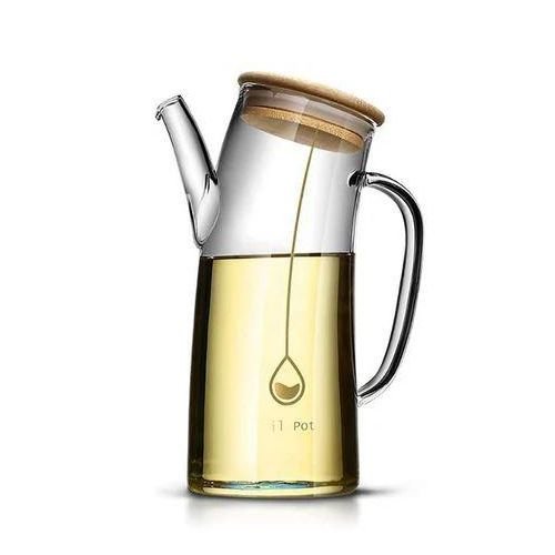 إبريق زجاجي شفاف مزود بغطاء خشبي ومقبض جانبي
