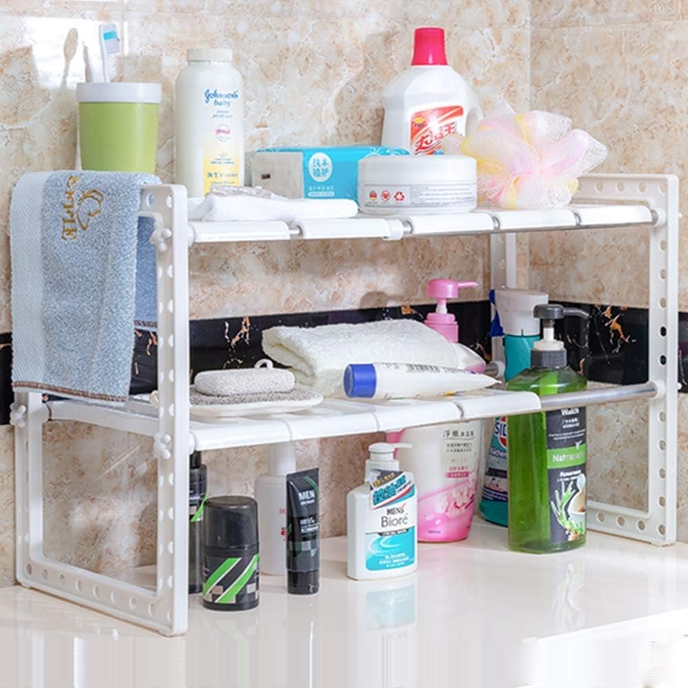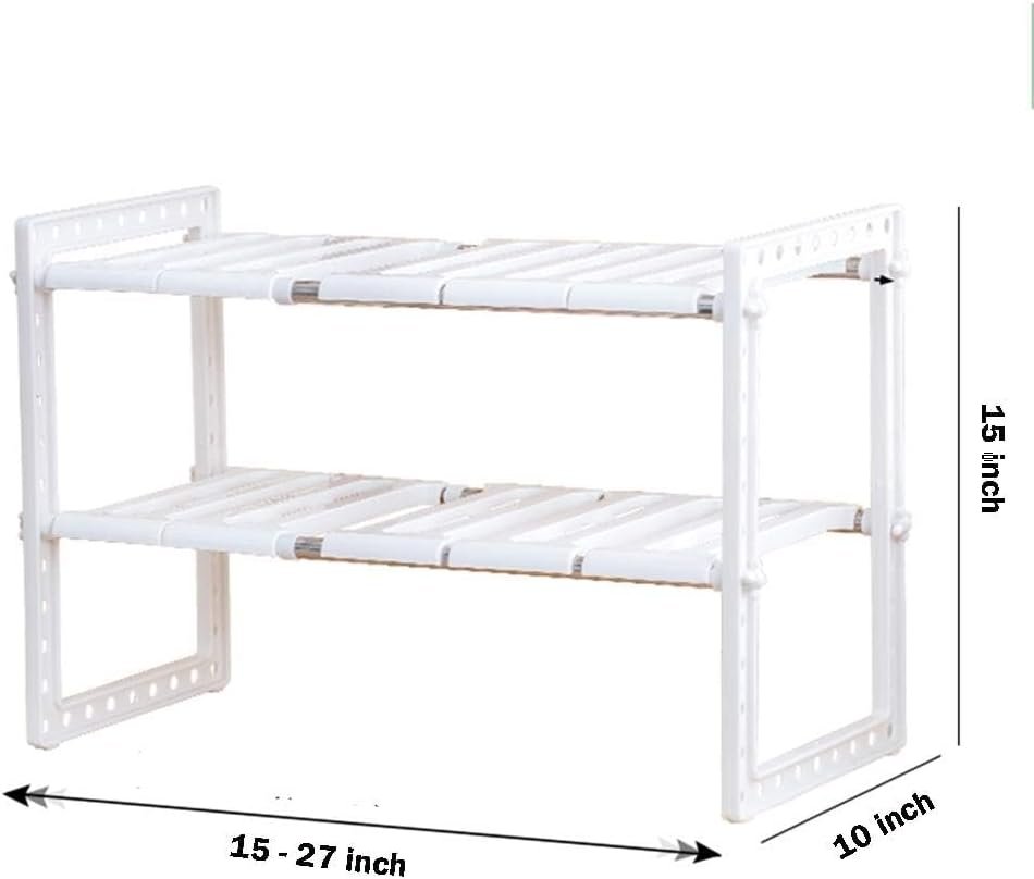 • رف تخزين متعدد الوظائف من طبقتين: مناسب لتخزين رف الحمام، أو تخزين خزانة حوض المطبخ، أو منظم التوابل، أو تحت جانب واحد من الرف أو منظم تخزين رف الحوض، ويمكن استخدامه أيضًا كرف كتب، أو رف توابل، أو رف أحذية.