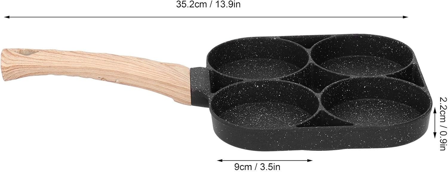 وعاء طهي بأربع فتحات، مقلاة فطائر بيض غير لاصقة بمقبض خشبي
