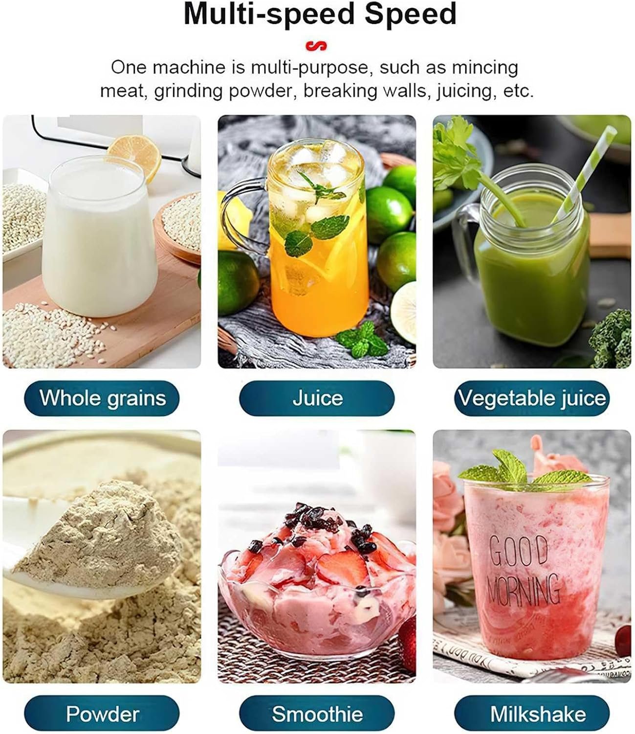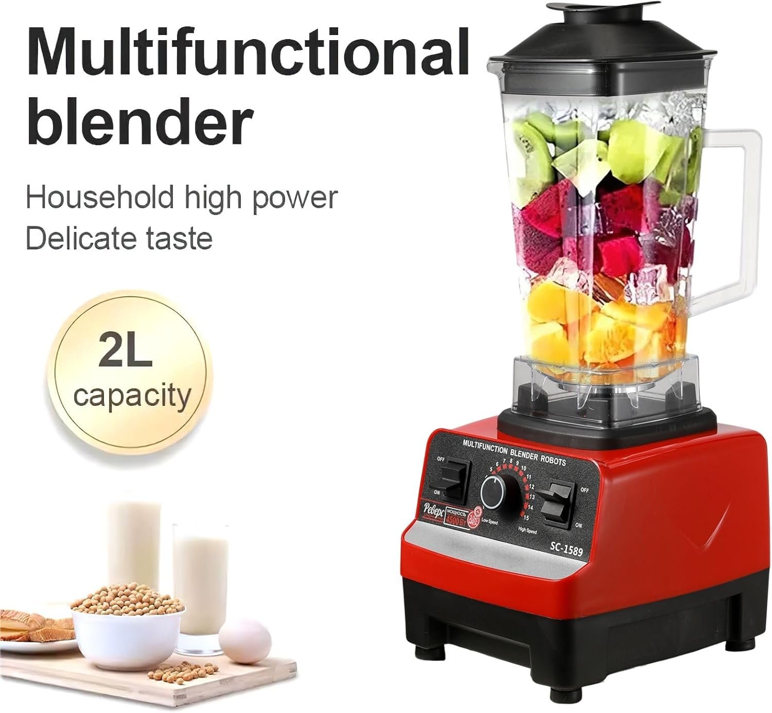 الوظائف: مناسب لتحضير العصائر، السموثي، طحن الثلج، الخضر، الفواكه وحتى المكسرات.