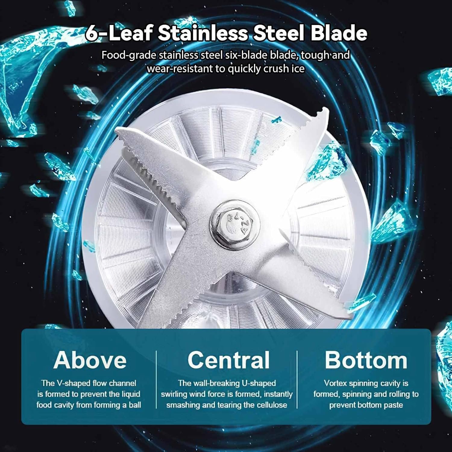 الشفرات: 4 شفرات حادة من الستانلس ستيل (Inox) لمزج وتكسير فعال.