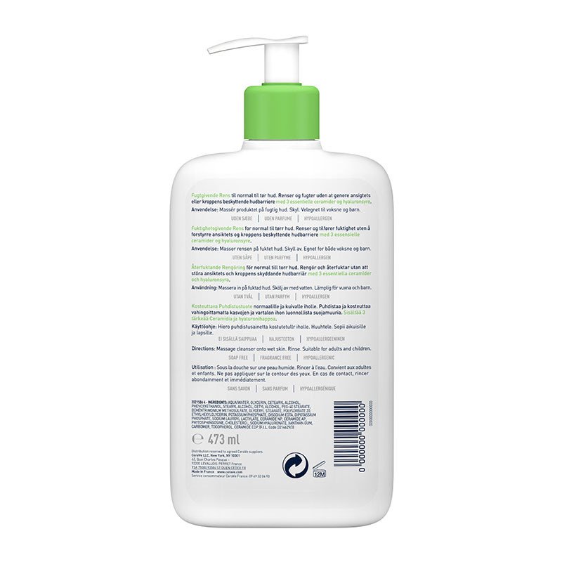 - مركب بمواد فعالة سطحية لطيفة، غنية بثلاث سيراميدات أساسية وحمض الهيالورونيك، لتنظيف وترطيب البشرة، ويتركها ناعمة وحريرية. تقنية MVE مع انتشار متواصل للمكونات الفعالة في البشرة، لتقوية حاجزها الواقي وترطيبها المستمر. قوام كريمي مرطب غير رغوي. مناسب للوجه والجسم. خالٍ من العطور. مضاد للحساسية. غير كوميدوغينيك. ينظف البشرة ويرطبها طوال اليوم، مع