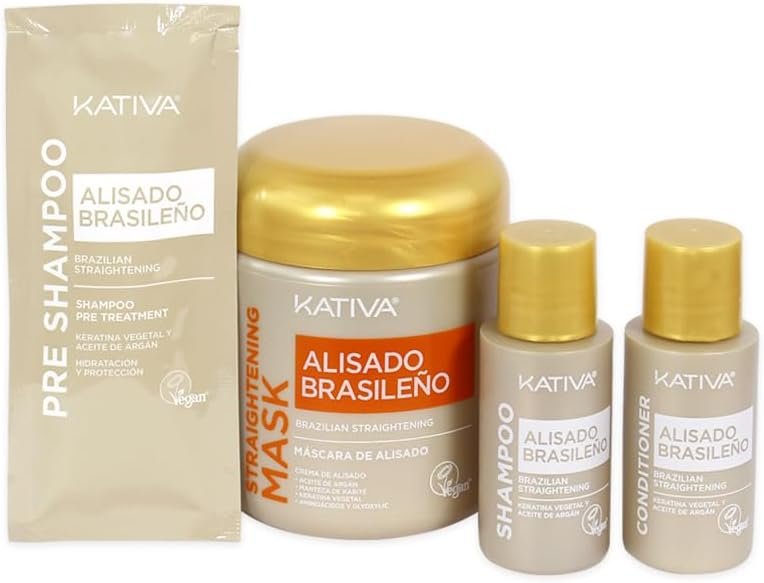 مجموعة Kativa Alisado Brasileño بخلاصة حمض الهيالورونيك مصممة للحصول على شعر أملس وحريري بفضل تقنية الكيراتين النباتي والمواد الطبيعية. تعمل على فرد الشعر بفعالية، تقليل التجعد، ومنحه ترطيبًا عميقًا ولمعانًا يدوم لعدة أسابيع.