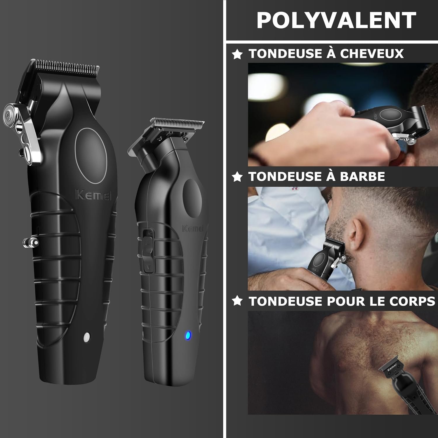 احصل على حلاقة دقيقة واحترافية في المنزل مع KEMEI Tondeuse à Cheveux Professionnelle, ماكينة قص كهربائية قابلة لإعادة الشحن مصممة للرجال وتناسب أيضًا استخدام العائلة بأكملها.